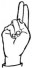 На ћирилици написано БЛАЖА ВИДОЈЕВИЋ састоји се из 14 слова [?]. Исписано ћириличном једноручном азбуком за глувонеме: